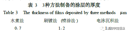 (2)电泳沉积法、水煮法和刷涂法主要以机械结合方式形成涂层。