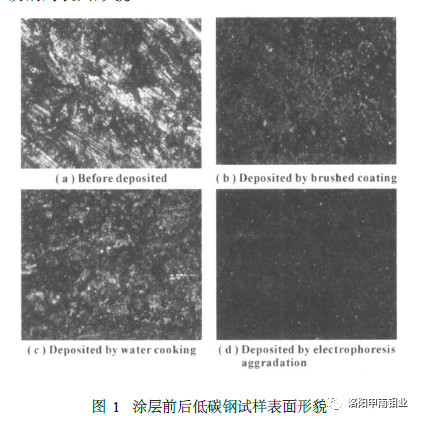 以上分析表明,电泳法涂层的强度..,电泳法可以提高表面硬度,从而提高试样的耐磨性,而且通过测定摩擦因数表明,电泳法得到的涂层的摩擦因数..小,因此电泳法优于其它2种方法。但是电泳法依然存在不足,如电泳法只能在一个表面形成涂层,无法在试样整体形成均一的涂层,这方面就不如刷涂法和水煮法。